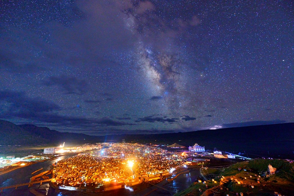 亚青寺位于川西甘孜州白玉县沙鲁里雪山下,海拔3600米以上,属藏传佛教宁玛派。亚青寺建在草原湿地之上,这里修行的僧尼达数万人,周边圈是密密麻麻的木屋僧舍,纵横交错的河流包围了整个寺庙的建筑群。每当清晨或黄昏,炊烟弥漫,河水闪耀着粼粼的金光,恍如世外桃源。
