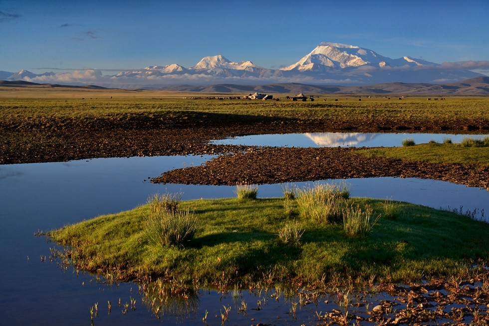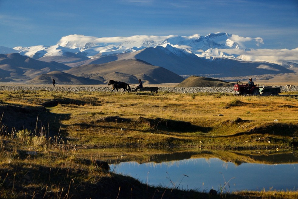 沿途拍摄沙湖倒影及赤麻鸭栖息地,傍晚拍摄老定日湿地、珠峰和卓奥友峰日落。
