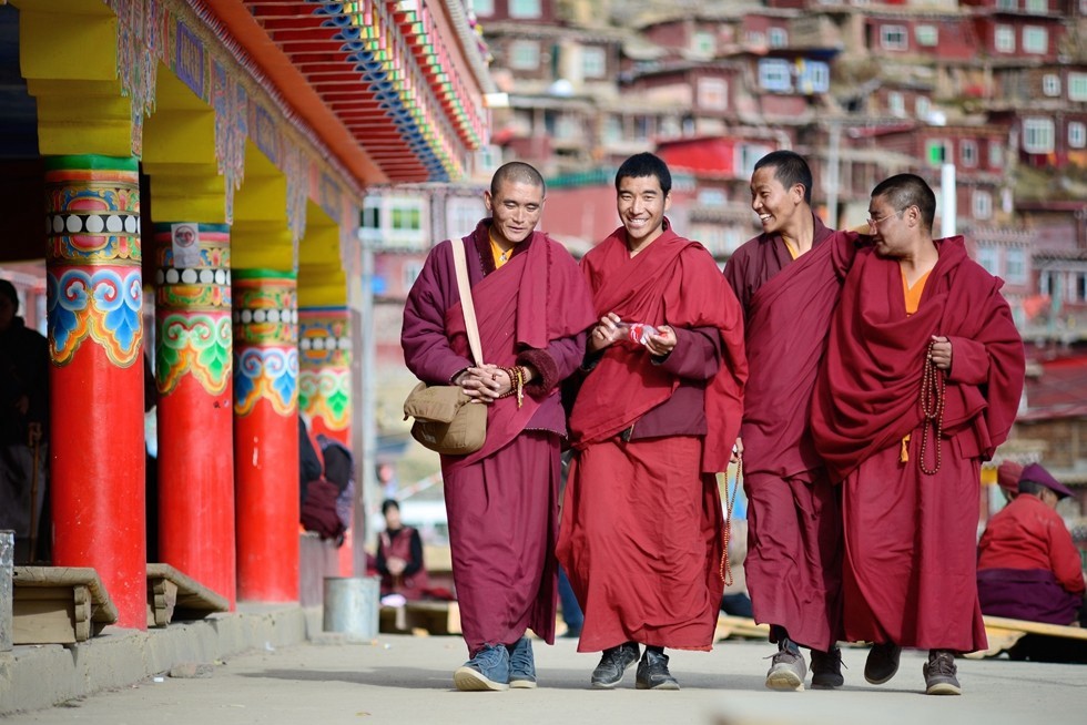 色达喇荣五明佛学院,1993年被美国《世界报》称为是“世界上最大的佛学院”。常住学员两万多人,每遇佛事活动更是增至五万有余,堪称“东方的耶路撒冷”。连绵的山谷里布满了成千上万喇嘛和觉姆的僧舍,其庞大壮观的阵势往往让初来者目瞪口呆。