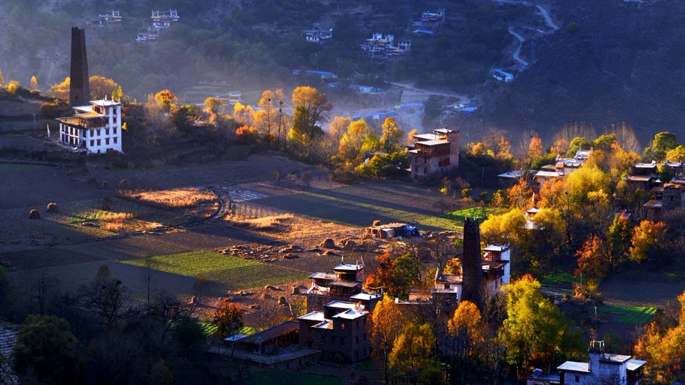 早起前往拍摄中路朝霞,,早起,继续在中路拍摄晨曦中的碉楼、藏寨、红叶和麦田的美丽乡村,后自由在中路摄影创作。丹巴县城午餐后沿金川河上行,前往雪梨之乡——金川,沿途拍摄金川河谷秋色、红叶、藏寨。